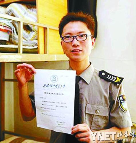 近日,中国人民大学保安员张团政收到了来自上海对外经贸大学研究生部的录取通知书,他是近年来人大第二位考取名校研究生的保安员。