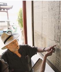 来自英国的康纳先生在讲解清行宫遗址导览标识外文翻译。 本报记者 魏志阳 摄