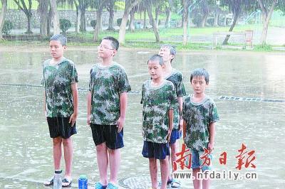 7月24日,王小姐为儿子小陈报名参加了广州一个为期14天的“军事夏令营”。由于是封闭式管理,夏令营每天都会往一个QQ空间上传营员训练的照片,以方便家长们了解自己孩子的近况。牵挂儿子的王小姐每晚都要去翻阅一番。7月31日晚,王小姐翻看当天更新的照片时,惊讶地看到小陈和别的几位营员一起站在大雨中,“连续七八张照片都是几个孩子站在雨中的,雨越下越大,孩子们表情看起来很难受”,王小姐说。出于担心,王小姐当即留言,之后又发短信向一位生活老师询问此事,但当晚都没有收到回复。