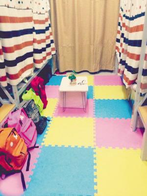 “入学之后过了两个多月,和宿舍的姐妹相处的还不错。”孙雨鑫说,“那时学院正在筹办宿舍美化大赛,于是我就提出要改造宿舍,并得到舍友的一致支持。”首先是集资,宿舍成员每人出100元共同购买改造宿舍用的相关材料。主要是壁纸、床帘、KT板、卡纸、双面胶、泡沫胶、鞋架等。所有东西买下来花了不到600元。剩下的做寝费了。