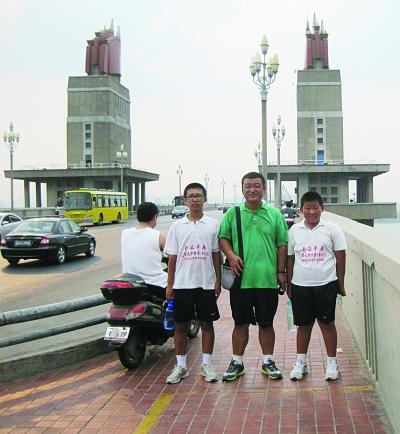 解爱民与儿子解平云(图右)、侄子解平冉(图左)在南京长江大桥留影。