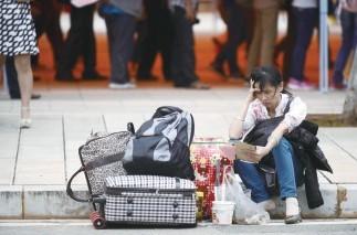 一位家长帮孩子守护行李,等待孩子报到。记者 赵永峰 摄