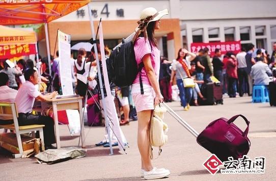 每年新生入学,大部分学生都是由父母陪同前来,也有一些是全家老少齐上阵,“送孩子上学,顺便来云南旅游。”他们说。