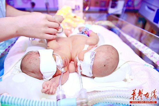 今日上午10点50分,在湖南省儿童医院新生儿一科病房,来自炎陵的联体小姐妹依偎着静静地躺在治疗辐射台上。此时,她们正徘徊在生死边缘,由于心脏、肝脏相连,且存在严重的心脏畸形,病情十分危重。