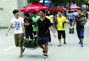 9月初,南昌各高校进入开学季。昨日,记者在多所高校看到,大部分新生由家长陪同前来,到处都可以看到家长帮新生搬行李的身影。深夜,家长们的身影又出现在学校体育馆临时准备的草席上。