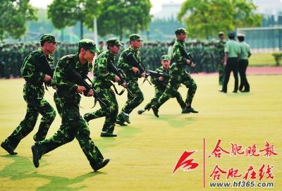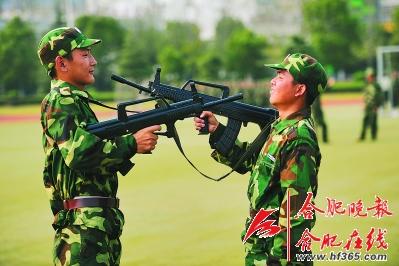 如此激烈的场面,可不是叙利亚政府军和反政府军的对抗,更不是索马里解救“人质”现场,而是合肥工业大学大一学生军训的一场演练。整个活动,紧张中充满着欢乐,当然枪支是训练用的仿真枪。