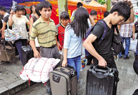 华农新生的家长紧张地送孩子入学 羊城晚报记者 陈秋明 摄