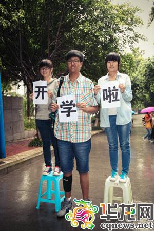 在接受记者采访,从学院报道点到宿舍的路上,有很多新生和学姐跟他打招呼,面对他的身高,大家都很热情。