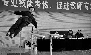 副科老师在工作中付出的并不少,却难得到平等的待遇。图为北京市中小学体育老师在进行体质考核。(资料图片)
