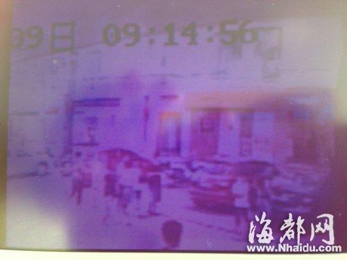 下课后,穿白色T恤的陈峰陪着穿黑色T恤的陈国(画圈处)到校医院去看医生(福建农林大学内探头拍下的视频截图)