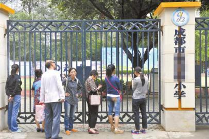 2013年9月11日,学生家长在校门外等待学生放学。
