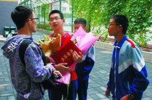 10点20分,趁着课间操的时间,校方对他进行了表彰。站在领奖台上,陈文翘楚一只手拿着鲜花,另一只手拿着两张奖状。一张奖状是展览路街道颁发的,另一张是学校颁发的,写的都是“见义勇为好少年”。除了荣誉,街道还奖励给他1000元的奖金。这让站在操场上的同学们,惊呼不已。