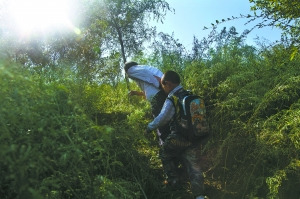 张老师每天护送小佳昊上下学,十几里的山路要走一个多小时。