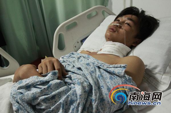 被刺伤的陈同学正在医院接受治疗 (南海网记者陈望 摄)