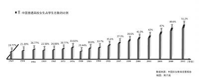 第二个高峰期是“文化大革命”期间,受到政策因素的影响,实行推荐上大学,同时考虑男女比例的平衡,加大了女性接受高等教育的机会,1976年女性接受高等教育的比例达到33.02%。