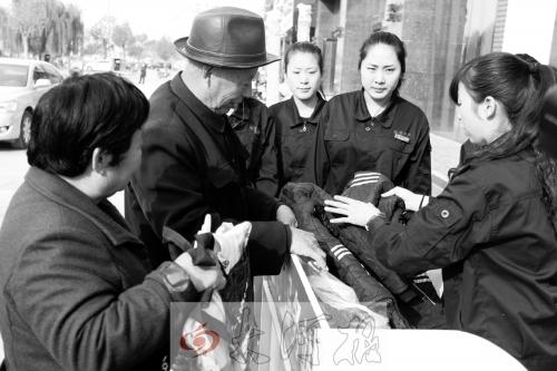 16日上午,大河报记者在柘城县牛城乡第二初级中学教学楼前看到,来自牛城乡各个中小学的450名学生代表和中小学教师脸上洋溢着幸福的笑容,孙红军正在向学校捐赠校服(如左图)。
