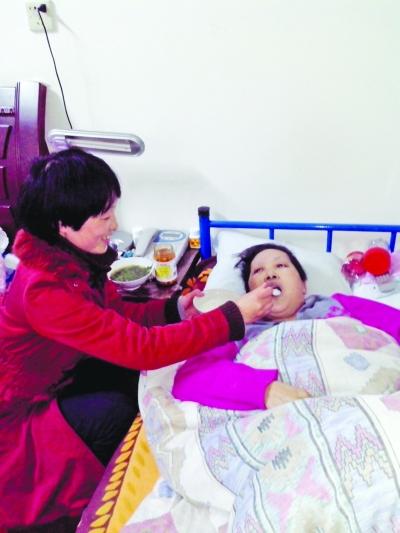 下班回家的第一件事,王丹都会把女儿带到母亲身边陪她说说话,让宝宝逗妈妈笑笑。由于癌细胞扩散,王丹母亲的坐骨、髋骨、腰椎、胸椎大面积病变,卧床不起,一日三餐,王丹都是端好饭菜喂母亲吃。