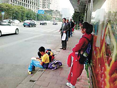 南昌小学生公交站台写作业 被称“刻苦弟”(图)