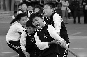 朝阳实验小学的男孩们正在进行拔河比赛。本报特约摄影 董德