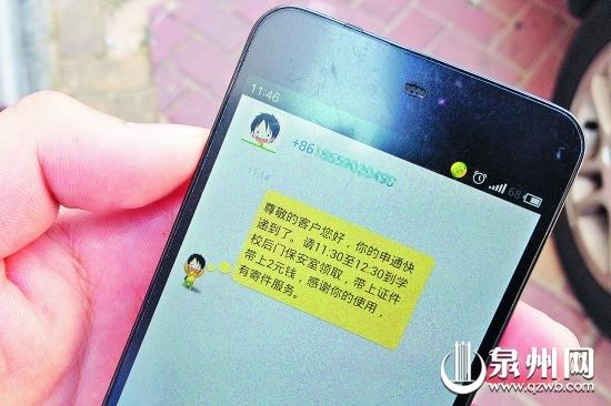 学生收到的领取快递的短信