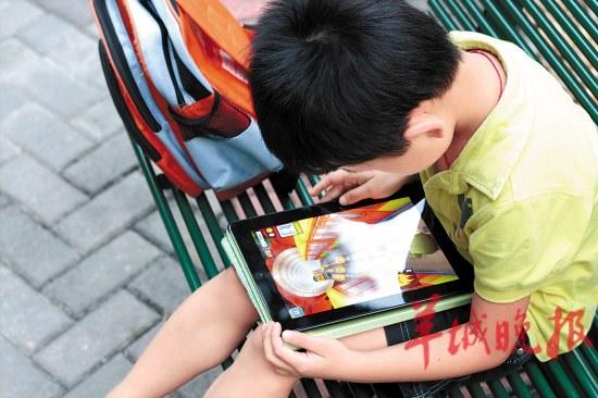 ←孩子沉迷于平板电脑 羊城晚报记者 王俊伟 摄