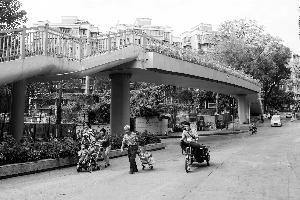 东莞庄路连接华南理工大学的一条天桥,因为马路上仍有红绿灯正常运作,所以很少人会经由天桥过马路。 信息时报记者 何剑辉 摄