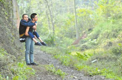 日中午12点过,简阳市三岔镇三岔中学,趁着午间休息,17岁的叶富源背起爸爸叶春柏在学校附近的小路上散步,阳光透过枝丫,照在两人的笑脸上,仿佛一切都充满了希望。