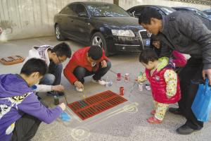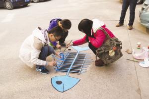 大学生井盖涂鸦进社区 小宝宝也想涂两笔