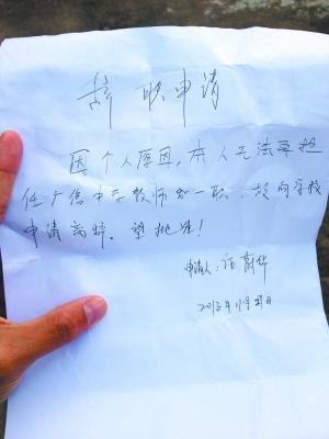 一位老师的辞职申请。