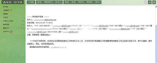 某高校毕业班公共邮箱收到的招聘信息,点名只要男生。
