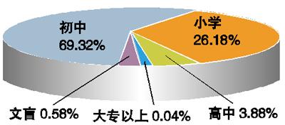 从受教育情况来看,未成年罪犯整体文化程度较低。2008年至2012年我省判处的全部未成年罪犯中,具有初中及以下文化程度的占绝大多数,达96.08%。其中初中文化程度的占69.32%;小学文化的次之,占26.18%;大专以上的仅占0.04%。从统计数据来看,仍有大量未成年罪犯没有完成九年义务教育。文化水平低,缺乏法律常识,是未成年人犯罪的重要原因之一。