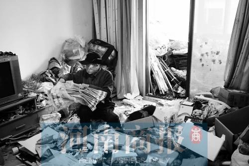 老王正在房子里收拾捡来的废品,房租年底就要到期,届时他和老伴儿将无处安身 河南商报记者 邱晓峰/摄
