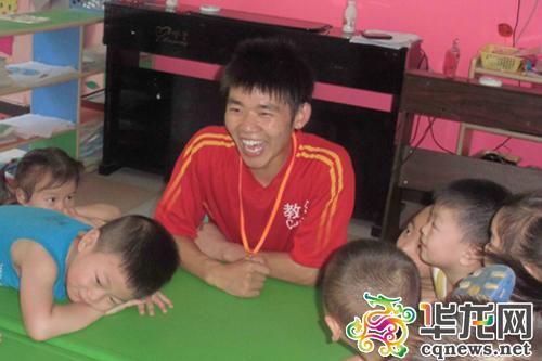 据了解,在九龙坡区博雅学童幼儿园里,24岁的邓成发作为园里唯一的男老师既感到有点“小众”的尴尬、又觉得充满了幸福与快乐。