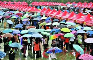 昨日,南方医科大学招聘会上,学子们冒雨求职。记者顾展旭摄