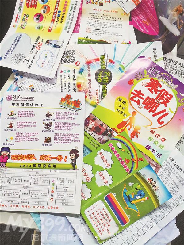 记者搜集了一些学校门口的宣传单,仔细查看内容发现,宣传单多数是文化学校的假期招生简介,还有一些舞蹈、滑冰、乒乓球等特长班的招生内容。其中一家少年宫推出了“寒假去哪儿”的活动,安排了寒假超值体验课程,为孩子们制定了以“玩转科学”为主题的寒假托管班,并详细介绍了假期去天文馆、科技馆、冰雪乐园等活动内容,引起了一些家长的兴趣。