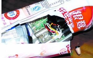 往年在考场查获的藏着针孔摄像机和信号发射器的饮料瓶。CFP供图