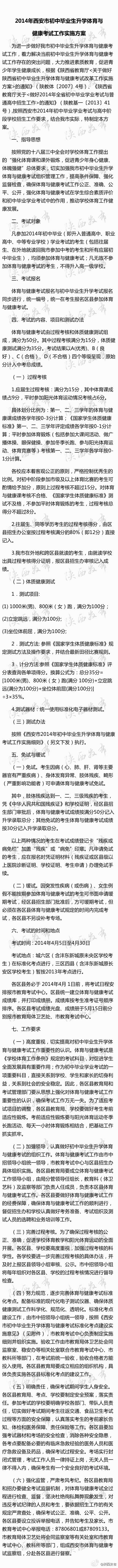 参与互动(0)据陕西新闻办官方微博消息,西安市教育局近日发布《2014年西安市初中毕业生升学体育与健康考试工作实施方案》,确定2014年西安市中考体育考试时间为4月5日至30日,满分50分,其中,过程考试满分15分,体制健康测试满分35分,总分计入中考成绩。
