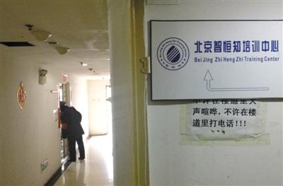 昨日下午,警方查封了北京智恒知培训中心,禁止出入通往培训中心办公室的走廊。 新京报记者 何光 摄