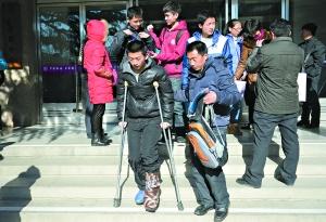 昨天,清华大学“自强计划”测试的笔试结束,一名考生前几天摔伤了脚,拄着双拐在家长的搀扶下走出考场。