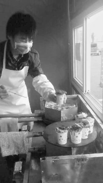 去年12月中旬,黄波回到北京,在一市场内租了一个8平方米店面,开始摆摊卖梅花糕。每天上午7时起,他和一群大叔大妈一起吆喝叫卖。