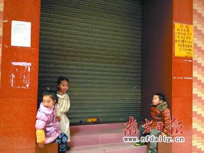 小朋友在被查处的金色阳光幼儿园门前玩耍。郝金朋 摄