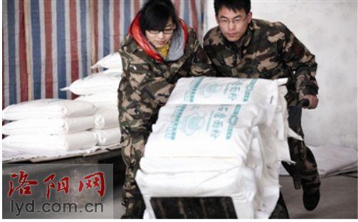 小两口齐心协力运送面粉