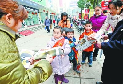 汉阳钟家村商场周围,汉阳机关幼儿园的小朋友们正在向行人卖报纸。 记者金振强 摄