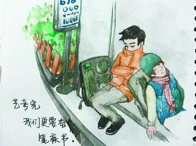 女生手绘“艺考生百态”引来学子共鸣
