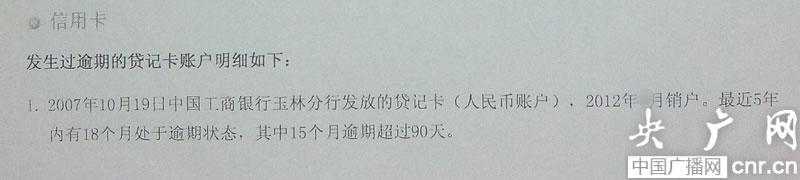 后来在朋友的指点下,他去中国人民银行广西玉林分行查询了个人信用记录,发现自己名下居然有不良信用记录,而产生不良记录的原因,居然是2007年在技工学校读书时,为领取助学金,学校集体下发的一张银行卡: