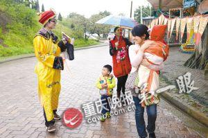 “下雨没什么游客,我们小组只有三个人找到了兼职。”大二学生金本迪告诉重庆晚报记者,由于一场大雨,他们小组仅有三个人做兼职赚了120元工资,其余同学只好临时做起了小生意。