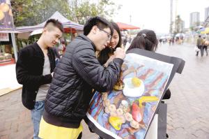 艺术设计专业的杨林和组员,销售的产品是平时画好的静物画,这吸引了不少目光,很快他们的营业额就达到了200多元。