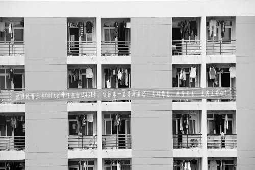 “热烈祝贺土木DOTA(网游)大神汪越初试431分、复试第一考研成功。”最近,郑州大学一宿舍楼外扯起长15米的横幅,祝贺土木工程学院2010级汪越顺利考上湖南大学研究生。大学期间,汪越把大量时间都“奉献”给了网游和篮球,曾有连续打网游七八个小时的“纪录”。研究生考试前100天,他浪子回头,华丽逆袭,超线111分,梦圆湖南大学。