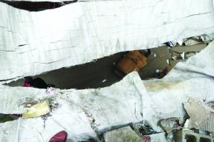 平房内是一个废纸回收站,房子外的过道上空挂有塑料布,中间有一个大窟窿,就是当时小琴摔下时踩破的