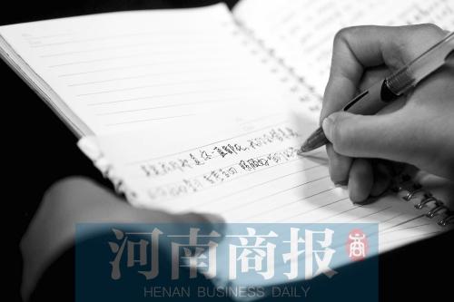 李翠的同学在纸上写下想对她说的话 河南商报记者 唐韬/摄